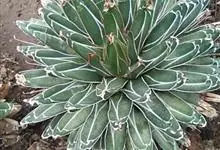 皇后龙舌兰是天门冬科、龙舌兰属多年生草本多浆植物。无主茎,叶丛生,莲座状,株幅40厘米。叶较多,先端较细,三棱形,腹面扁平,背面圆形呈微龙骨凸起,长10-30厘米,宽2.5-7.5厘米,厚肉质硬,…全部>>