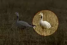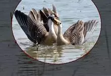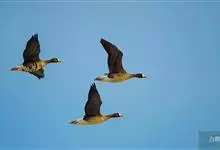 灰雁:体长70-90厘米,翼展147-182厘米,体重2.5-4千克,寿命17年。体大而肥胖。嘴、脚肉色,上体灰褐色,下体污白色,飞行时双翼拍打用力,振翅频率高。脖子较长。腿位于身体的中心支点,…全部>>
