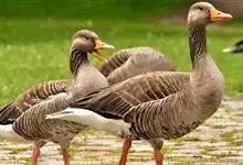 灰雁:体长70-90厘米,翼展147-182厘米,体重2.5-4千克,寿命17年。体大而肥胖。嘴、脚肉色,上体灰褐色,下体污白色,飞行时双翼拍打用力,振翅频率高。脖子较长。腿位于身体的中心支点,…全部>>