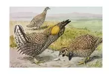 草原松鸡:体长43-47厘米,翼展69厘米,体重900-1100克。雄鸟头顶耸立的针状羽毛形成的两个尖顶羽冠。颈部和眼睛上方有黄橙色的膨胀的大气囊。雌鸟的上体是锈褐色,夹杂着黑色及皮黄色的的横斑,…全部>>