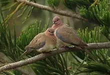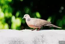 珠颈斑鸠,别名花斑鸠、珍珠鸠、花脖斑鸠、鸪鹪,是鸠鸽科副斑鸠属鸟类。体型中等,体长27~34cm,体重120~205g,雌鸟和雄鸟羽色相似,但雌鸟不如雄鸟羽色亮泽。珠颈斑鸠前额至头顶羽色稍淡,…全部>>