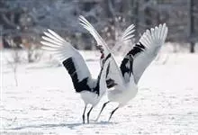 丹顶鹤:是鹤科、鹤属的一种大型涉禽,体长120-160厘米。颈、脚较长,通体大多白色,头顶鲜红色,喉和颈黑色,耳至头枕白色,脚黑色,站立时颈、尾部飞羽和脚黑色,头顶红色,…全部>>