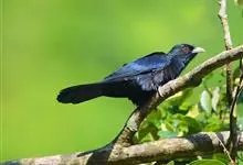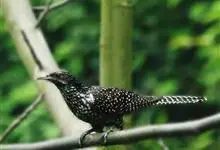 斑翅凤头鹃: 成鸟具羽冠,上体及头侧、翅、尾等黑色,具铁绿色亮辉,尾羽端部具白斑,两侧者形宽,中央者较狭;下体白色、淡灰白或略带棕黄色。虹膜褐至红褐色;嘴黑色;脚灰蓝黑色。…全部>>