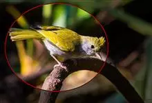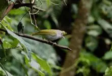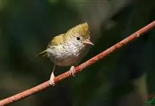 白腹凤鹛是绿鹃科、绿凤鹛属的小型鸟类,体长10-12厘米。上体从头到尾黄绿色,有短的羽冠,头顶微具黑色羽轴纹;眼先、眼周,耳羽和下体灰白色,尾下覆羽黄色。虹膜褐色或红褐色,上嘴浅褐色或肉褐色,…全部>>