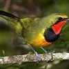 银耳相思鸟小型鸟类,体长14~18厘米。头顶黑色,耳羽银灰色,前额橙黄色;外侧飞羽橙黄色,基部朱红色,极为鲜艳、醒目。尾圆形,尾上、尾下覆羽朱红色,尾暗灰褐色,外侧尾羽橙黄色,其余上体橄榄绿或橄榄黄色。…全部>>