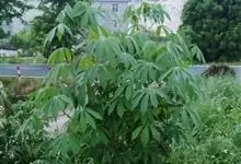 木薯,为大戟科木薯属的一种直立灌木,又名木番薯、树薯。木薯高1.5-3米;块根圆柱状。叶纸质,轮廓近圆形;裂片倒披针形至狭椭圆形;托叶三角状披针形。圆锥花序顶生或腋生,花萼带紫红色且有白粉霜。…全部>>
