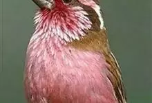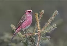 藏朱雀:全长约17-18厘米。雄鸟头部深红色具光辉,喉部暗红色具白色点斑;背部灰白色,各羽具玫瑰红色羽端,形成许多斑纹;腰部淡玫瑰红色;翅暗褐色,沾灰白,羽端沾玫瑰红或灰白色;尾暗棕色,端缘玫瑰红色…全部>>