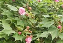 木芙蓉,锦葵科木槿属落叶灌木或小乔木。小枝上有细绒毛;叶片为卵状心形,托叶为披针形,常早落;花单生,花萼为钟形,花冠初为白色或淡红色,后逐渐变为深红色;果实为扁球形,有淡黄色的毛附着。花期8到10月。…全部>>