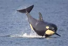 虎鲸,是鲸偶蹄目海豚科虎鲸属哺乳动物。成体体重6600千克,平均体长6-9米;头部略圆,…全部>>