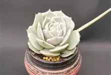 露娜莲是景天科拟石莲花属的多肉植物,由丽娜莲和静夜杂交而来。培育者为美国加利福尼亚州的育种师Dick Wright。灰绿色的叶片排列紧密,轮廓精致优雅,在阳光充足的环境下会呈现出优雅的藕荷色,…全部>>