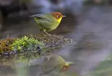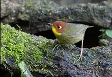 栗头地莺:小型鸣禽。体长约10厘米。体型纤细,是中国体型最小的鸟类之一;喙细尖,上喙先端多有缺刻;翅短圆;尾短至中等;腿短而细。羽色以灰、褐及橄榄绿为主,雌雄羽色相似。栖息于灌木或稀疏林内,…全部>>