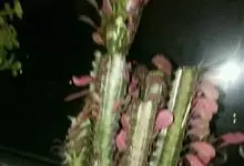 霸王鞭,是大戟科大戟属的多年生肉质灌木,全株含白色乳汁;茎直立,茎基部圆柱形,上部4~5纵棱,边缘波状,外面深绿色;叶互生,上部叶密集,近于簇生,具短柄,其基部有利刺1对;叶片披针形,先端圆,…全部>>