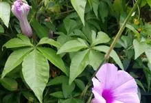 五爪金龙 Sweet),旋花科番薯属多年生缠绕草本植物。茎细长,有细棱;叶片为掌状;花冠紫红色、紫色或淡红色、偶有白色,漏斗状;蒴果近球形。花期5~12月。五爪金龙的叶子类似掌状,有5至7个裂痕,…全部>>