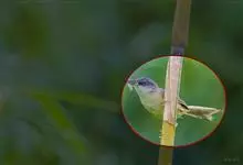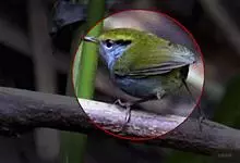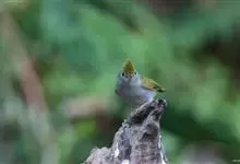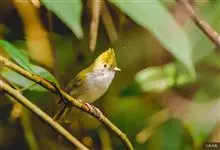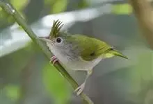 白腹凤鹛是绿鹃科、绿凤鹛属的小型鸟类,体长10-12厘米。上体从头到尾黄绿色,有短的羽冠,头顶微具黑色羽轴纹;眼先、眼周,耳羽和下体灰白色,尾下覆羽黄色。虹膜褐色或红褐色,上嘴浅褐色或肉褐色,…全部>>