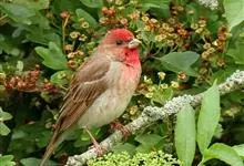 普通朱雀是雀形目雀科朱雀属鸟类,又名红朱雀、马料、青麻料。雄鸟上体红色,下体淡红色;头部、喉部、胸部及腰部亮红色;背部褐色染红色;两翼及尾黑褐色,羽缘染红色。雌鸟上体橄榄褐色,下体近白色,…全部>>
