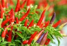 五色椒又名朝天椒,五彩辣椒,为辣椒 变种,味涩。属茄科多年生半木质性植物,常作一年生栽培;江苏沭阳一带有不少花农种植,其株高30厘米—60厘米,分枝多、茎直立,单叶互生;花白色,开花期5月初—7月…全部>>