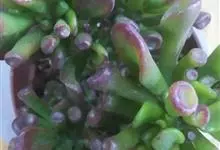 筒叶花月,是景天科青锁龙属的多年生草本植物。植株多分株,灌木状,茎较粗壮,圆柱形,表皮灰褐色;叶片肉质,互生,呈圆筒状,簇生于茎或分枝顶端,叶端呈斜截形,截面为椭圆形;花呈星状,淡白色;花期秋季。…全部>>