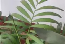 袖珍椰子是棕榈科、竹节椰属植物。常绿小灌木,盆栽高度一般不超过1米。它茎干直立,不分枝,深绿色,上具不规则花纹。叶一般着生于枝干顶,羽状全裂。长14-22厘米,宽2-3厘米,…全部>>