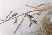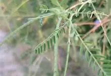 田菁 Pers.)是豆科田菁属的一年生草本。株高2~3.5米;茎绿色或褐红色,微被白粉;小叶线状长圆形,先端钝或平截,两侧不对称;花枝疏生白色绢毛,与叶轴及花序轴均无皮刺;荚果细长圆柱形;种子有光泽,…全部>>