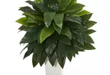 彩叶万年青 Schott)是天南星科、花叶万年青属较矮小亚灌木。茎粗壮,上升,上部直立。叶柄具鞘,绿色,具白色条状斑纹;叶片长圆形至卵状长圆形,中肋宽厚,侧脉表面下凹,花序柄短。佛焰苞骤尖,绿色或白…全部>>