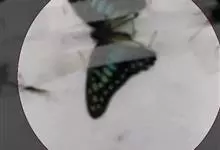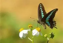 青带凤蝶Graphium sarpedon ,又名青凤蝶,是最普遍的中型凤蝶,飞行速度很快。青带凤蝶的翅膀中央有许多浅蓝色的斑点,很整齐地排列成一条直线。这些斑点由上而下逐渐变大,就像一条青色的带子。全部>>