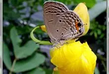 蚜灰蝶又名棋石灰蝶,Taraka hamada Druce,灰蝶科蚜灰蝶属。体小形,翅展22-26mm。翅黑褐色,无斑纹,缘毛黑白相间。 反面白色,前后翅各散布20余个黑斑,翅中央黑斑较大,排成不规…全部>>