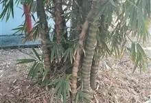 佛肚竹:为禾本科丛生型竹类植物。幼秆深绿色,稍被白粉,老时转榄黄色。秆二型:正常圆筒形,高7-10米,节间30-35厘米;畸形秆通常25-50厘米,节间较正常短。箨叶卵状披针形;箨鞘无毛;箨耳发达,…全部>>