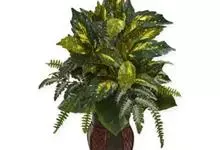 彩叶万年青 Schott)是天南星科、花叶万年青属较矮小亚灌木。茎粗壮,上升,上部直立。叶柄具鞘,绿色,具白色条状斑纹;叶片长圆形至卵状长圆形,中肋宽厚,侧脉表面下凹,花序柄短。佛焰苞骤尖,绿色或白…全部>>