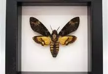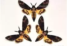 鬼脸天蛾,是鳞翅目天蛾科面形天蛾属动物。成虫翅展100~125毫米,体黑褐色;胸背有骷髅形斑纹;卵圆球形,直径约2毫米,淡黄绿色,表面光滑;老熟幼虫体长70~90毫米,蛹体长约56毫米;前翅为褐色,…全部>>