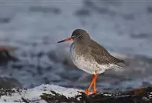 红脚鹬:体长28厘米,上体褐灰,下体白色,胸具褐色纵纹。飞行时腰部白色明显,次级飞羽具明显白色外缘。尾上具黑白色细斑。虹膜黑褐色,嘴长直而尖,基部橙红色,尖端黑褐色。脚较细长,亮橙红色,…全部>>