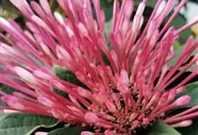 烟火树 Merr.)是唇形科、大青属常绿灌木或小乔木,株高可达4米。幼枝方形,墨绿色。叶对生,长椭圆形或披针形,先端尖,全缘或波状缘。纸质,叶背暗紫红色。聚伞状圆锥花序,顶生,小花多数,聚生成团,…全部>>