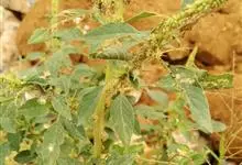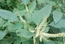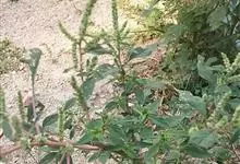 反枝苋是苋科苋属的一年生草本植物。株高达1米;茎密被柔毛;叶菱状卵形或椭圆状卵形,先端锐尖或尖凹,两面及边缘被柔毛,下面毛较密;穗状圆锥花序,顶生花穗较侧生者长;花被片长圆形或长圆状倒卵形,…全部>>