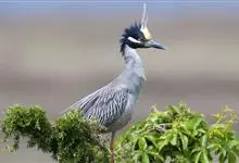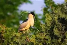 夜鹭是中型涉禽,体长46-60厘米。体较粗胖,颈较短;嘴尖细,微向下曲,黑色;胫裸出部分较少,脚和趾黄色;头顶至背黑绿色而具金属光泽;上体余部灰色;下体白色;枕部披有2-3枚长带状白色饰羽,下垂至背上,…全部>>
