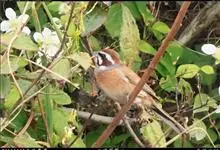 栗耳鹀:是雀形目鹀科的鸟类。体重16-27克,体长130-173毫米。是体型略大的鹀。繁殖期雄鸟的栗色耳羽与灰色的顶冠及颈侧成对比;颈部图纹独特,为黑色下颊纹下延至胸部与黑色纵纹形成的项纹相接,并与…全部>>