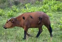 非洲野水牛:共有5个亚种。头体长2.1-3.4米,身高1-1.7米,体重300-900千克。胸膛宽阔,四肢粗壮,头大角长,雄性的角从头部向外和向下扩散,在一些雄性中,角通过覆盖头部的大盾连接。头顶的…全部>>