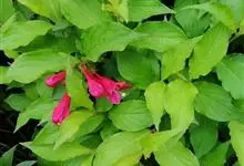 红王子锦带花是忍冬科锦带花属的落叶开张性灌木。株高1 -2米;嫩枝淡红色,老枝灰褐色;单叶对生,呈椭圆形,先端渐尖,叶缘有锯齿,红枝及叶脉具柔毛;花冠漏斗状钟形,花冠筒中部以下变细,聚伞花序,…全部>>