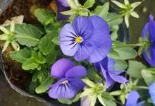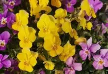 角堇:为堇菜科堇菜属多年生草本植物。株高10-30厘米 ,宽幅20-30厘米。具根状茎。茎较短而直立,分枝能力强。花两性,两侧对称,花梗腋生,花瓣5,花径 2.5-4.0厘米。花色丰富,…全部>>