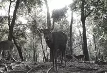 水鹿是偶蹄目鹿科鹿属哺乳动物,又称黑鹿、春鹿、山牛。身体高大粗壮。头骨细长,鼻骨、额骨发达,颈部较长;四肢细长,主蹄大,侧蹄小;长尾巴的两侧密生着长毛。雄性头上有角,角从额部的后外侧生出,稍向外倾斜,…全部>>