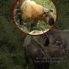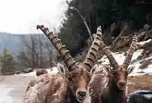 羚牛,偶蹄目牛科羚牛属哺乳动物,俗称扭角羚、野山牛、盘羊。其体形粗壮。尾短。吻鼻部隆起且裸露。前额隆起,毛短而蓬松。角基粗,由头顶长出后先向上升起,又突然翻转,靠近头部,复向外伸,然后又向后弯转,…全部>>