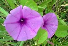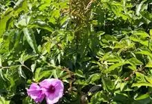 五爪金龙 Sweet),旋花科番薯属多年生缠绕草本植物。茎细长,有细棱;叶片为掌状;花冠紫红色、紫色或淡红色、偶有白色,漏斗状;蒴果近球形。花期5~12月。五爪金龙的叶子类似掌状,有5至7个裂痕,…全部>>