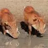 非洲疣猪:也称普通疣猪,体重在50-75千克之间,因眼部下方具疣而得名,在挖土取食时,这些疣可能有助于保护眼睛。头较大,占体长的三分之一。背部具鬃毛。獠牙4枚,长而锋利。独居或成群穴居,善于挖洞。…全部>>