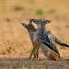亚洲胡狼是金豺的指名亚种,体型中等、匀称,四肢修长,趾行性,利于快速奔跑。头腭尖形,颜面部长,鼻端突出,耳尖且直立,嗅觉灵敏,听觉发达。犬齿及裂齿发达;上臼齿具明显齿尖,…全部>>