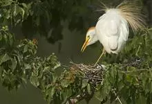 牛背鹭:体较肥胖,喙和颈较短粗。夏羽大都白色;头和颈橙黄色,前颈基部和背中央具羽枝分散成发状的橙黄色长形饰羽;前颈饰羽长达胸部,背部饰羽向后长达尾部,尾和其余体羽白色。冬羽通体全白色,个别头顶缀有黄色,…全部>>