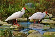 朱鹮是鹈形目鹮科朱鹮属的鸟类动物。其雄鸟通体白色,羽干及两翅与尾等均沾染粉红色;颈项上有很多长矛状羽毛,形成羽冠,耸立时非常夺目;嘴长而向下曲,呈黑色,先端朱红,脚的裸露部分亦呈亮红色。雌鸟羽色略同,…全部>>