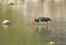 黑鹳是鹳形目鹳科鹳属鸟类,俗称乌鹳、钢鹳、老鹤。黑鹳头、颈和脊均呈黑褐色,故名黑鹳。黑鹳上体羽黑色、并带有绿紫色金属光泽,胸腹部羽白色;嘴、腿均红色;两性相似;成鸟嘴长而直,基部较粗,…全部>>