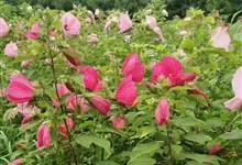 芙蓉葵是锦葵科木槿属植物,又名草芙蓉、大花秋葵,原产于北美。落叶灌木状。叶大、广卵形,叶柄、叶背密生灰色星状毛。花大,单生于叶腋,有白、粉、红、紫等色。喜阳、略耐阴,宜温暖湿润气候,忌干旱,耐水湿,…全部>>