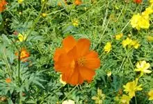 黄秋英是菊科秋英属的一年生草本植物。枝叶为对生的二回羽状复叶,裂片呈披针形;花为舌状花,有单瓣和重瓣两种,颜色多为黄、金黄、橙色,红色;瘦果棕褐色,粗糙有毛,顶端有细长喙;春播花期6-8月,…全部>>