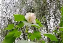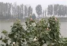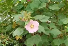 木芙蓉,锦葵科木槿属落叶灌木或小乔木。小枝上有细绒毛;叶片为卵状心形,托叶为披针形,常早落;花单生,花萼为钟形,花冠初为白色或淡红色,后逐渐变为深红色;果实为扁球形,有淡黄色的毛附着。花期8到10月。…全部>>
