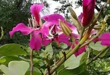 羊蹄甲,别名紫花羊蹄甲、玲甲花,是豆科羊蹄甲属的一种常绿乔木或灌木。树冠开展,枝桠低垂;树皮灰色至暗褐色,近光滑。枝幼时微被灰色短柔毛,后毛脱落;叶硬纸质,近圆形,基部浅心形,…全部>>