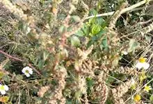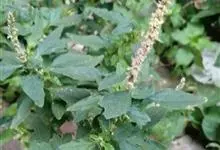 反枝苋是苋科苋属的一年生草本植物。株高达1米;茎密被柔毛;叶菱状卵形或椭圆状卵形,先端锐尖或尖凹,两面及边缘被柔毛,下面毛较密;穗状圆锥花序,顶生花穗较侧生者长;花被片长圆形或长圆状倒卵形,…全部>>